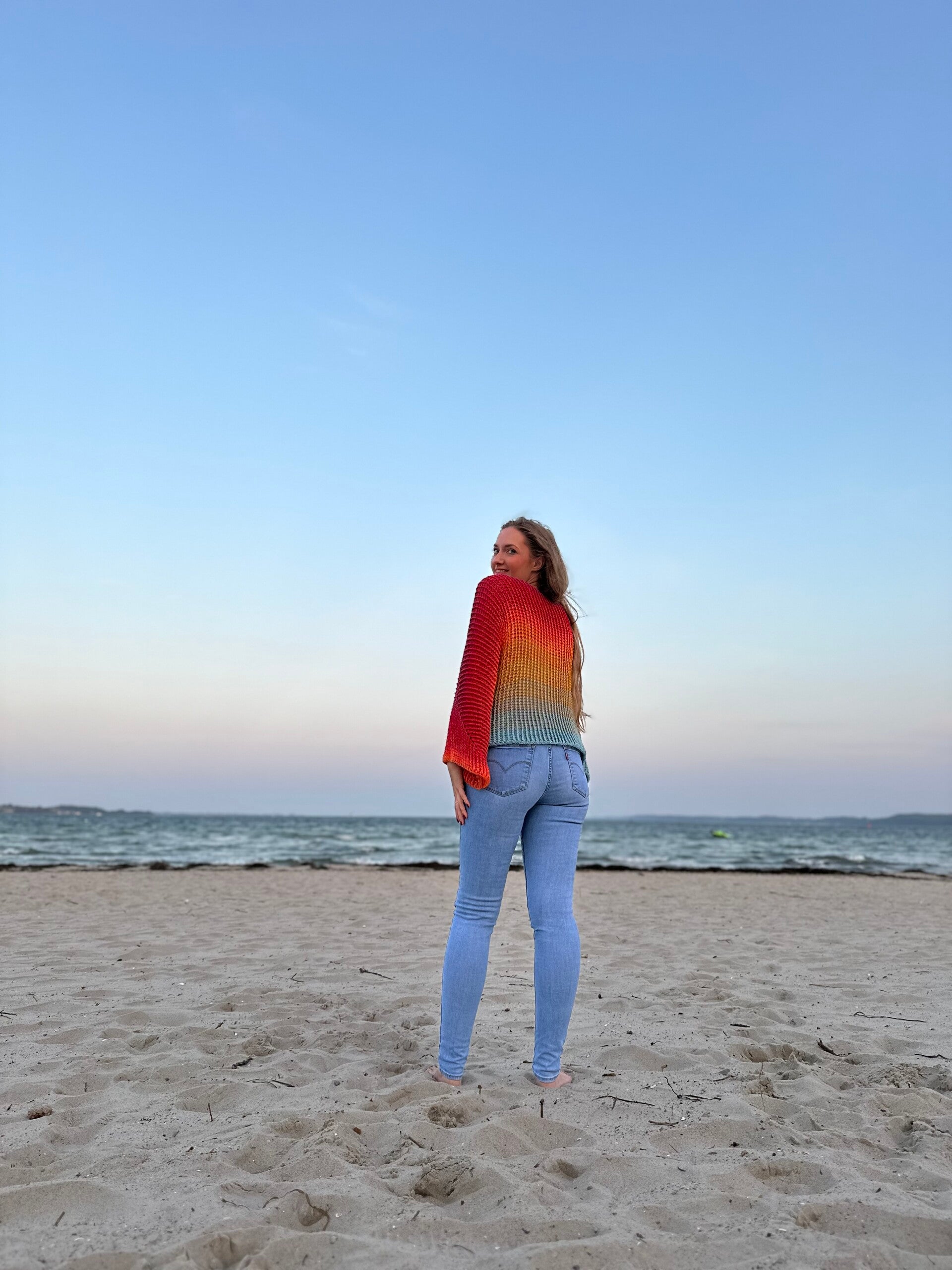 Je nach Garnauswahl, kann man den Pullover in jeder Jahreszeit tragen. Besonders gut eignen sich hier Farbverlaufsgarne, weil er mit einem Rutsch von der Häkelnadel hüpft.