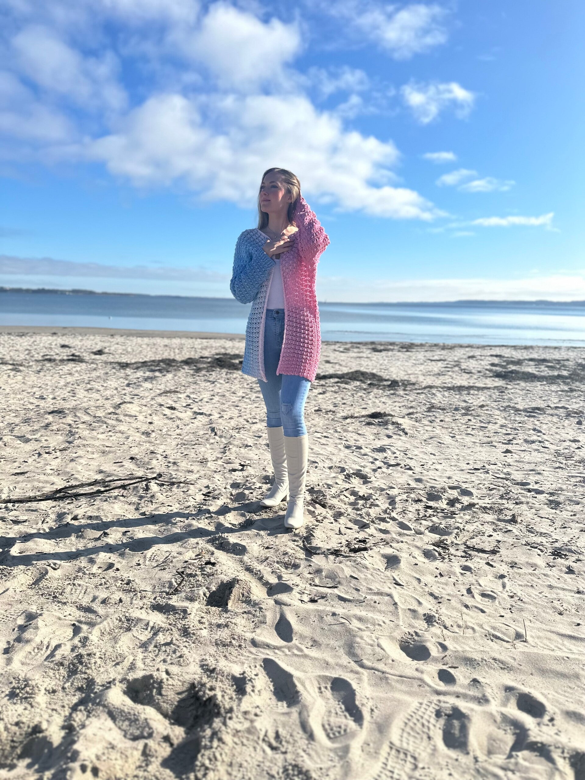 1-Bobbel-Arm-zu-Arm-Wende-Häkeljacke „BOY OR GIRL“