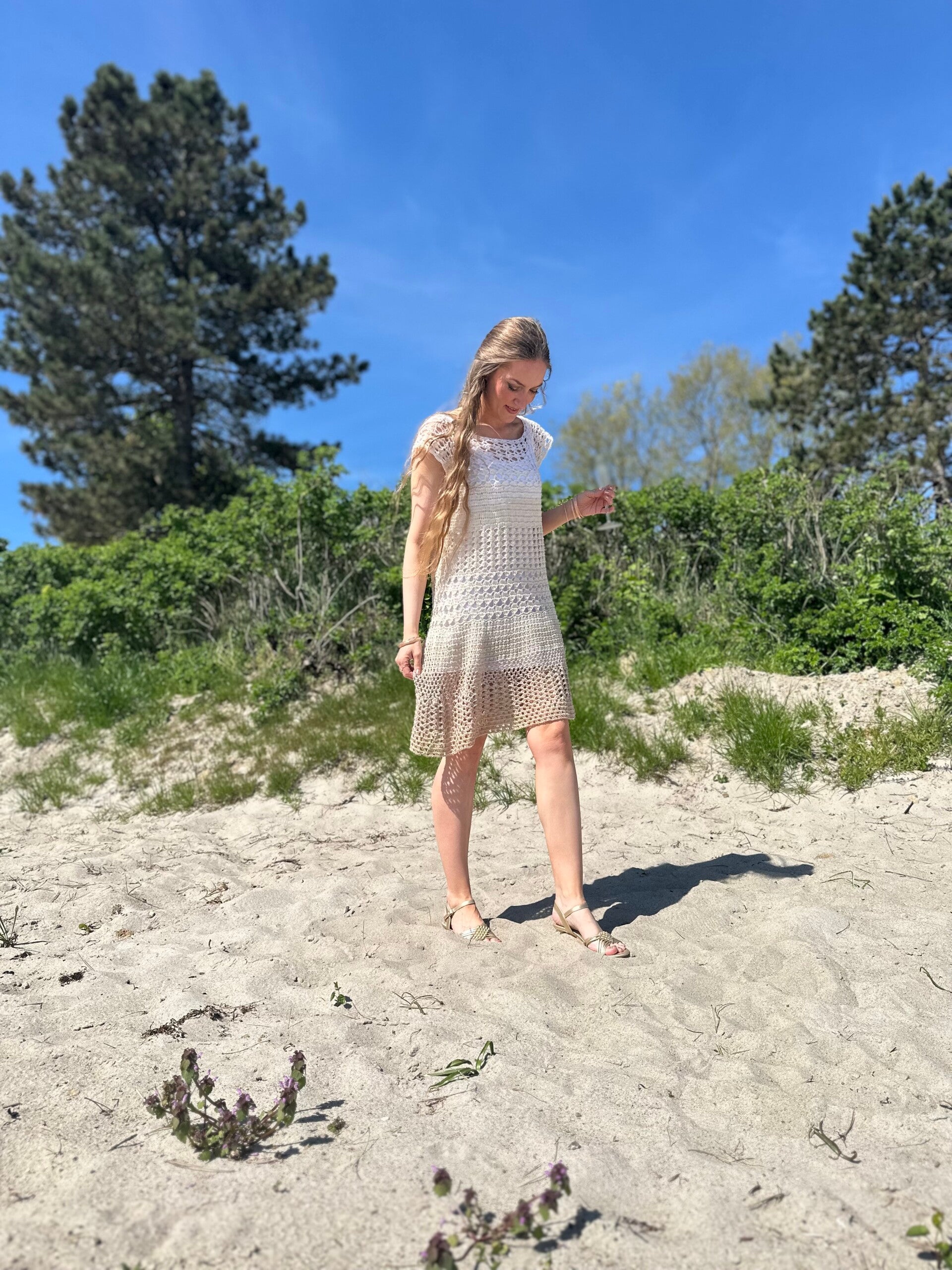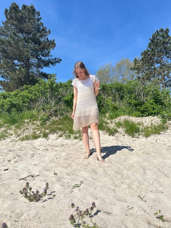 1-Bobbel-CHAMPAGNE-Häkelkleid „Sandspuren“